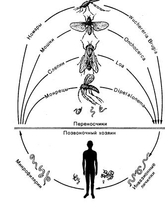Пути заражения: при укусе комаров родов Anopheles, Aёdes, Mansonia.