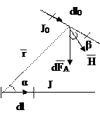 | Источник | Тело, обладающее массой m (кг) | Тело, обладающее зарядом q (Кл) | Проводник с током J (А), длиной dl повернут под углом α (рад) к