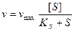 Это уравнение называется уравнением Михаэлиса-Ментен. Согласно этому уравнению, при большой концентрации субстрата