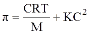 Растворы ВМС, как и коллоидные растворы, не подвергаются диализу, т.е. не проходят через полупроницаемую мембрану. Через мембрану проходят только молекулы растворителя, создавая при этом осмотическое давление. Кровь, лимфа, тканевые жидкости человека представляют собой водные растворы макромолекул и ионов многих веществ (КСI, NaCI и др.). Их суммарное осмотическое давление при 37о составляет 7,7 атм. Это давление является суммой давлений всех растворенных в плазме крови веществ, в том числе и белков. Особое значение в водном обмене между кровью и тканевой жидкостью имеет часть общего осмотического давления, которая обусловлена ВМС - белками. Эта часть осмотического давления называется онкотическимдавлением. Оно невелико, составляя в норме всего около 0,004 атм.(т.е. в 200 раз ниже осмотического давления) и тем не менее играет определенную роль в биологических процессах. Онкотическое давление растворов ВМС значительно увеличивается с ростом концентрации и может быть рассчитано по уравнению Галлера:
