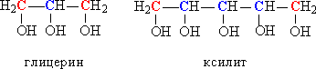 У многоатомных спиртов, содержащих две или более ОН-групп, могут присутствовать одновременно как первичные, так и вторичные НО-группы, например, в глицерине или ксилите (рис. 3).