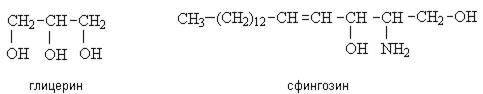 В составе липидов высшие жирные кислоты связаны сложноэфирными или амидными связями со спиртами, важнейшими из которых являются трехатомный спирт глицерин и аминоспирт сфингозин.