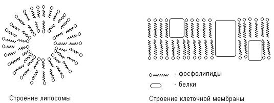 Молекулы фосфолипидов дифильны. Они содержат полярную гидрофильную “голову” и неполярный гидрофобный “хвост”. В водной среде они способны образовывать сферические мицеллы – липосомы, которые можно рассматривать как модель клеточных мембран.