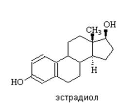 женские половые гормоны (гестагены и эстрогены),к которым относят прогестерон (гормон беременности), эстрадиол, регулирующий менструальный цикл.