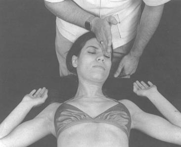 Тест - Пациент находится в положении лежа на спине, руки расположены над головой для абдукции плечевых и флексии локтевых суставов. Далее он приподнимает голову со стола за счет флексии шеи и производит ротацию головы на 10° по отношению к той стороне, которая подлежит тестированию. Врач использует локтевой край кисти руки, нажимая на лоб и оказывая противодавление в направлении экстензии шеи прямо по направлению к столу, а не на уровне с 10 градусной ротацией головы пациента. Край кисти руки обеспечивает лучшую направляющую силу, ограничивая способность пациента к вовлечению в тест ротационных факторов против действия руки исследователя. Необходимо следить за тем, чтобы голова пациента не вращалась, используя активность синергистов, Нужно также предотвратить латерофлексию головы пациента.