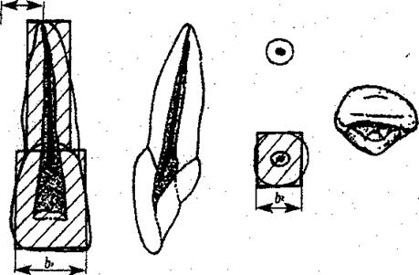 Длина зуба принята 26мм, другие размеры выдержаны пропорционально длине, согласно данным [84]. Угол наклона зуба по отношению к вертикали принят 9° [112].
