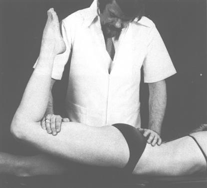 Тест: пациент в положении лежа на животе, сгибаетколено иразгибает бедро. Флексия колена необходимо для исключения из теста экстензоровбедра. Врач направляет давление на дистальную одну третью часть бедра в направлении флексии бедра. Следите за тем, чтобы была адекватная фиксациятаза к столу за счет экстензоров туловища и косой мускулатуры живота.