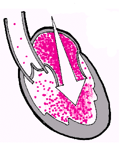 В других случаях, несмотря на снижение инотропной функции миокарда, сердечный выброс может длительное время оставаться в пределах нормальных значений, хотя резко повышенными оказываются конечно-диастолическое давление и объем желудочка (КДД и КДО), а также давление в предсердии и легочной артерии. В этих случаях сохранение должной величины МО обеспечивается повышенным растяжением сердечной мышцы, увеличением конечно-диастолического объема желудочка и включением механизма Старлинга.