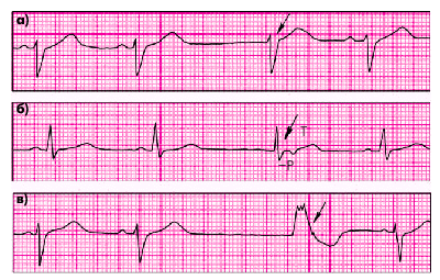 ЭКГ-признаки(рис. 3.23, в):