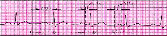 3. Длительность сегмента Р–Q(R) не больше 0,10 с.
