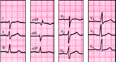 - длительность комплекса QRS больше 0,11–0,12 с.