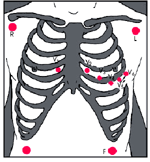 | Рис. 5.22. Расположение электродов на теле пациента при регистрации ЭКГ во время физической нагрузки |
