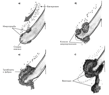 Существование очагов инфекции в сердце сопровождается несколькими важнейшими следствиями: