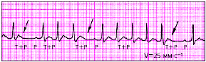 Блокированные предсердные ЭС—экстрасистолы, исходящие из предсердий, которые представлены на ЭКГ только зубцом Р, после которого отсутствует экстрасистолический желудочковый комплекс QRST'.
