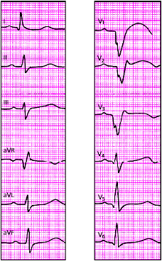 | Рис. 3.121. ЭКГ при переднеперегородочном инфаркте миокарда |