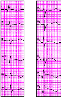 | Рис. 3.131. ЭКГ при остром мелкоочаговом инфаркте миокарда переднеперегородочной и верхушечной областей |