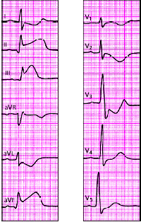 | Рис. 3.123. ЭКГ при переднебоковом инфаркте миокарда |