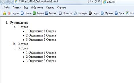 | Список с маркерами в виде окружности | <ul type="circle"> <li>...</li> </ul> | o Первый o Второй o Третий |
