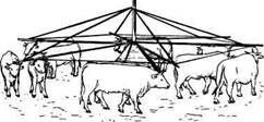 ло. В этих целях быков можно также использовать ежедневно в течение 2-3 часов на легких внутрихозяйственных работах (подвозка кормов, дров и т. п.), жеребцов-производителей и неработающих лошадей ежедневно проезжают в легкой упряжке или под верхом. Для групповой прогулки быков организуют табунный моцион или устанавливают «вертушку» (рис. 17).