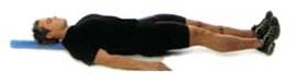 Лежание на эластичном круглом бруске (эластичном ролике).Вы можете приобрести такой эластичный ролик, как ниже показано на иллюстрации, меньше, чем за 10 $. Они доступны в интернете на специализированных спортивных порталах и, вероятно, также в магазинах спортивных товаров. Эластичный ролик должен проходить от макушки вашей головы вниз между вашими ногами, ниже тазовой области. Лежите на нем в течение пяти минут ежедневно. Следующие несколько недель постепенно, не торопясь, увеличивайте продолжительность лежания на одну или две минуты до тех пор, пока не достигнете десяти минут.