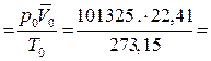 Экспериментально установлено, что при нормальных физических условиях (T0 = 273,15; p0 = 760 мм рт. ст. = 101325 Па) объем одного моля любого газа