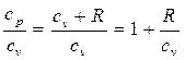 Величина к зависит от природы газа и всегда больше единицы. По известным значениям R и к можно вычислить как cp, так и cv, используя следующие выражения: