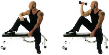 Вы можете выполнять это упражнение как одной рукой, так и двумя руками. Версия с одной рукой обычно выполняется, сидя на скамье и расположив на ней одну ногу. Ступня этой ноги лежит на скамье полностью, а колено располагается приблизительно на уровне плеча. Положите локоть рабочей руки на колено (правый локоть – на правое колено, левый – на левое), согнув руку в локтевом суставе на 90 градусов. Вращайте руку наружу так высоко, как сможете, и медленно опускайте, насколько возможно. Помните, что это упражнение предназначено для изолированной работы ротаторов плеча, так что не нужно дополнительно увеличивать амплитуду движениями торса.