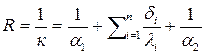 Для плоской стенки, состоящей из п неоднородных слоев, полное термическое сопротивление будет иметь вид: