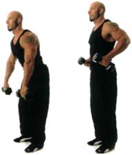 Начинайте выполнение упражнения из положения легкого наклона вперед, хват прямой (пронированный). С подъемом веса принимайте вертикальное положение, одновременно разворачивая кисти рук в нейтральную позицию.