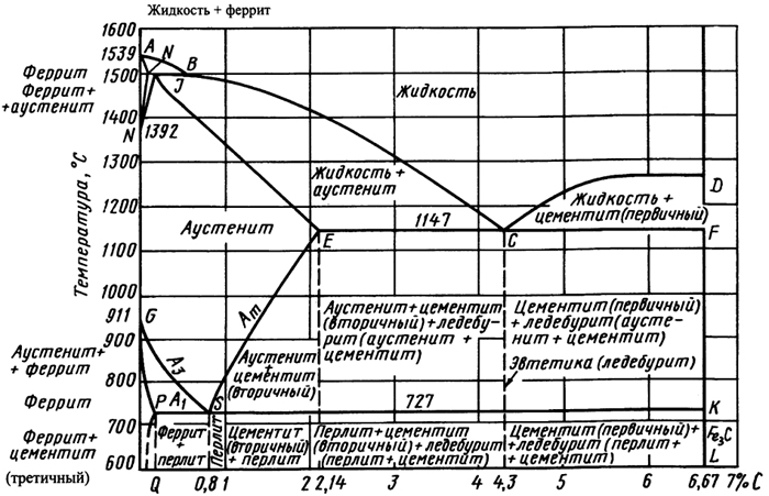 Рис. 1.9. Диаграмма состояния железо - цементит