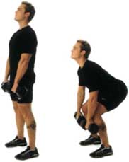 Начинайте упражнение, двигая бедра назад. Позвольте коленям немного сгибаться, поскольку вы опускаете гантели только чуть ниже колен.