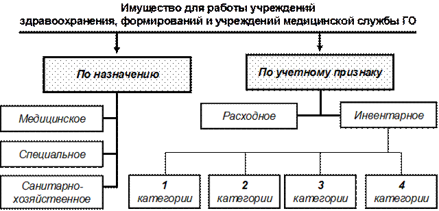 Имущество, необходимое для работы учреждений здравоохранения, формирований и учреждений медицинской службы ГО, классифицируется: