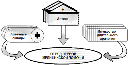 Схема 11.5.Обеспечение медицинским имуществом отрядов первой медицинской помощи.