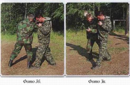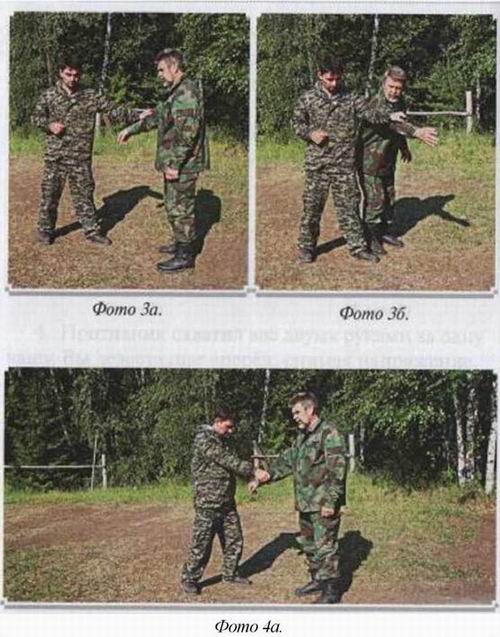 Кроме того, из этого положения легко нанести удар кулаком или основанием ладони, или атаковать противника локтем, (фото 3)