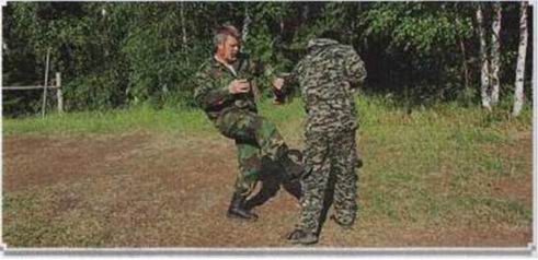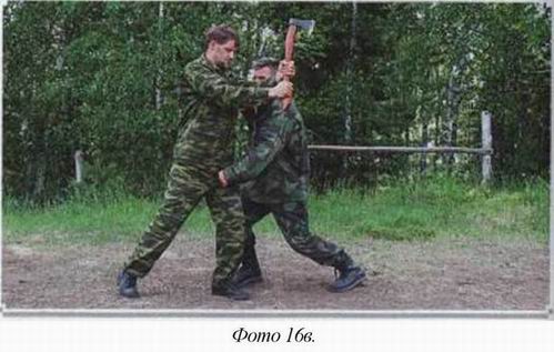 Примечание 2: Если в руках противника топор или шашка, ничего не меняется. Работает та же самая техника. Главное, видеть откуда идёт удар и вовремя через скрутку или раскрутку войти в ближний бой.