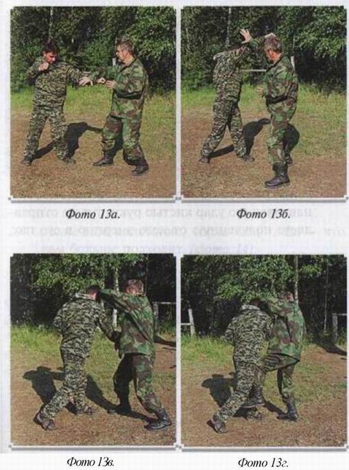 1. Противник атакует вас прямым ударом в голову. Крестом вы ловите его руку и тут же переходите к нему за спину. Дальше конец схватки понятен, (фото 13)