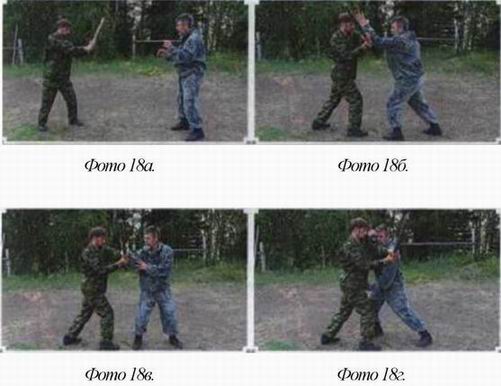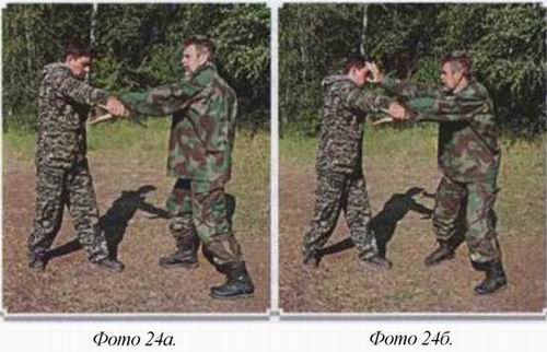 Примечание 1: Если противник держит оружие двумя руками, то, благодаря «раскрутке», вы оказываетесь сбоку, точнее, позади него, что упрощает вашу победу. (фото 23)