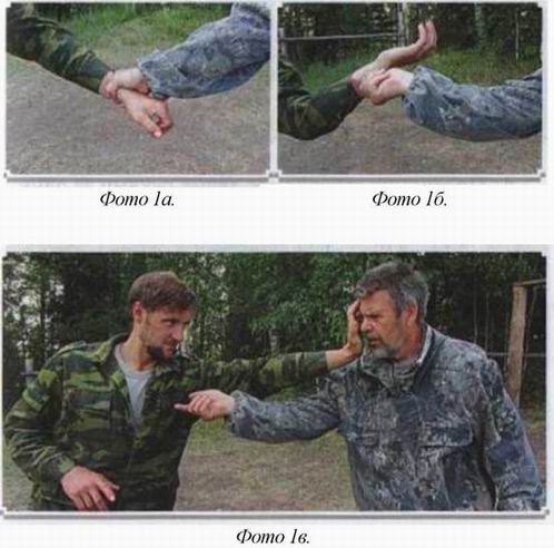 1. Противник схватили вас за рукав. Вы вращаете руку либо по часовой стрелке, либо против неё. Дальше следует атака, (фото 2)