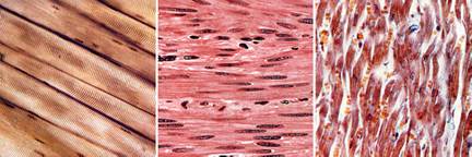 Мышечная ткань делится на гладкую (неисчерченную), поперечно-полосатую (исчерченную) скелетную и поперечно-полосатую (исчерченную) сердечную.