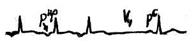 Рис.7. Момент прекращения пароксизма предсердной тахикардии. Первые 3 цикла тахикардия с частотой 196 в мин. 4-ый цикл синусовый.