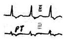 Рис. 2. Синусовая тахикардия с частотой ритма 110 в мин. За счет укорочения диастолы укорочения интервала Т-Р.