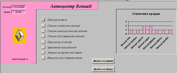 Таким образом, для управления работой базы используются две страницы кнопочного меню. Первая страница- для удобного занесения в базу оперативных данных: