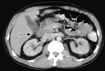 Figure 9 – Computed tomography on admission showed pericholecystic inflammation, suggesting acute cholecystitis, and a possible gallstone