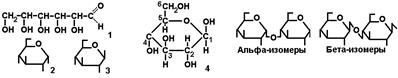 1. Какие формы глюкозы изображены на рисунке цифрами 1 — 4?
