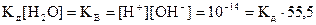 При постоянной температуре в разбавленных растворах концентрация воды в воде [H2O] постоянна и равна 55,5
