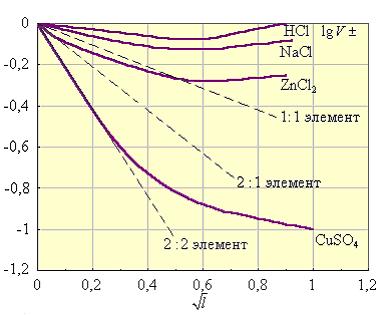 Коэффициент активности по Дебаю-Хюккелю зависит, по крайней мере, от температуры, диэлектрической проницаемости растворителя (ε) и ионной силы (I); последняя служит мерой интенсивности электрического поля, создаваемого ионами в растворе.
