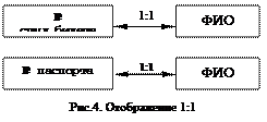 При помощи отображений 1:1 («один к одному») представляют такой тип связи, когда один ЭЭД, от которого направлена связь, идентифицирует один и только один ЭЭД, к которому направлена связь, и наоборот (рис.4).