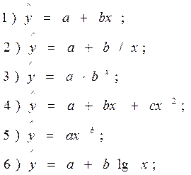 Найбільш часто використовуються для характеристики економічних показників наступні типи функцій: