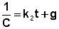 Рис. 2.4 Зависимость обратной концентрации от времени для реакций второго порядка.