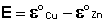 Анализируя уравнение (III.45), можно определить предел необратимой работы гальванического элемента. Поскольку на аноде идет процесс окисления цинка, концентрация ионов цинка при необратимой работе гальванического элемента постоянно увеличивается; концентрация ионов меди, напротив, уменьшается. Отношение концентраций ионов меди и цинка постоянно уменьшается и логарифм этого отношения при [Сu2+] < [Zn2+] становится отрицательным. Т.о., разность потенциалов при необратимой работе гальванического элемента непрерывно уменьшается; при E = 0 (т.е. εк = εа) гальванический элемент не может совершать работу (необратимая работа гальванического элемента может прекратиться также и в результате полного растворения цинкового анода).